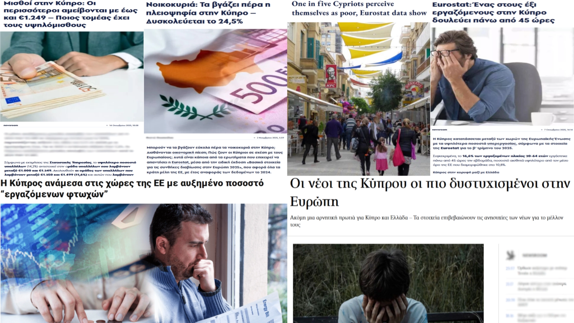 - 1 στους 5 εργαζόμενους στην Κυπρό πιάνει κάτω που 1500 ευρώ μεικτά.