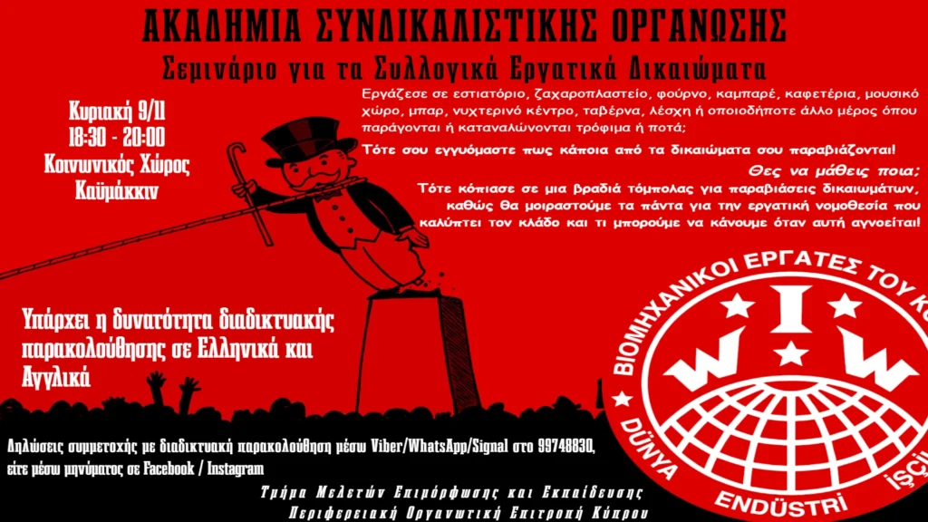 For the Cost of Living Adjustment, for Dignity in Our Lives, and for All the Reasons in the World! Thursday 11/9, 11:00 - 14:00 Strike protest 12:00, Ministry of Finance, Nicosia *** A chowder of striking sabotabbies! On Thursday 11/9, wobblies in Cyprus joined the...
